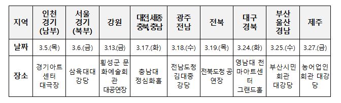 행정안전부는 제9회 전국동시지방선거(6.3.)를 대비하여 차질 없는 법정 선거사무 수행을 위해 3월5일(목)부터 3월27일(금)까지 지방정부 선거 담당 공무원 대상으로 9개 권역별 순회 교육을 실시한다.