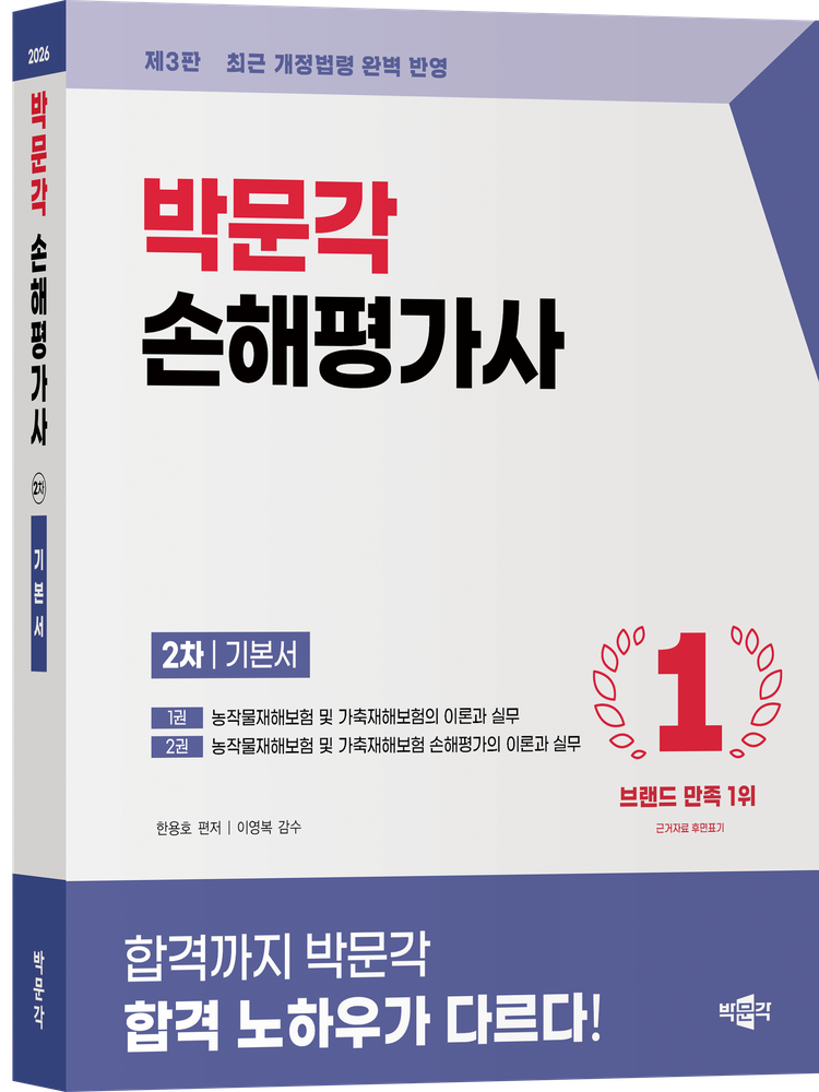 (주)박문각출판에서 '2026 손해평가사 1차 기본서(제3판)' 개정판 교재가 출간되었습니다.