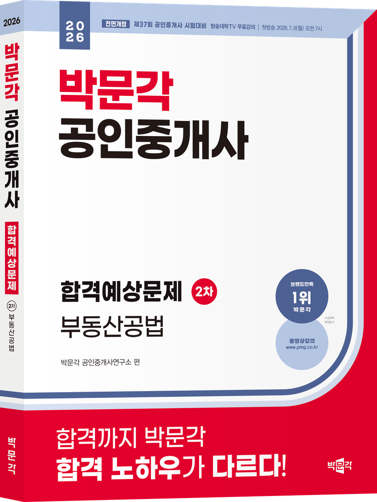 '2026 박문각 공인중개사 기본서 2차 부동산공법'은 2026년 제37회 공인중개사 자격시험을 대비하기 위한 기본서입니다. 부동산공법은 그 내용이 방대하고 복잡할 뿐만 아니라 법률이 자주 개정되기 때문에 쉽게 접근하기 어려운 과목이라는 것이 수험생들의 일반적인 생각입니다. 수험생들의 이러한 고민을 해결하고 부동산공법이 더 이상 공포의 과목이 아닌 즐겁고, 재미있고 친숙한 과목으로 느낄 수 있도록 하기 위하여 본서를 집필하게 되었습니다.